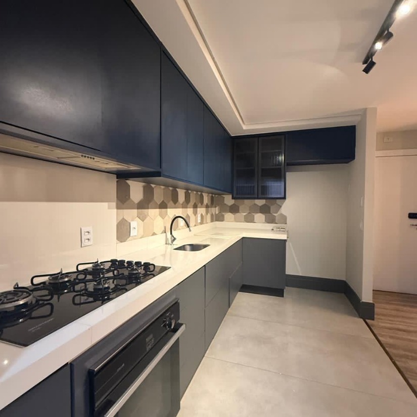 Cooktop, coifa e forno instalados