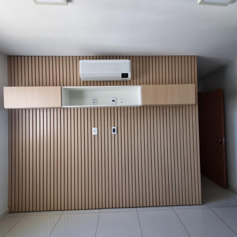 - Ar Condicionado: 1 de 18.000 BTUs na sala, 2 de 9.000 BTUs nos quartos e 1 de 12.000 BTUs na suíte.